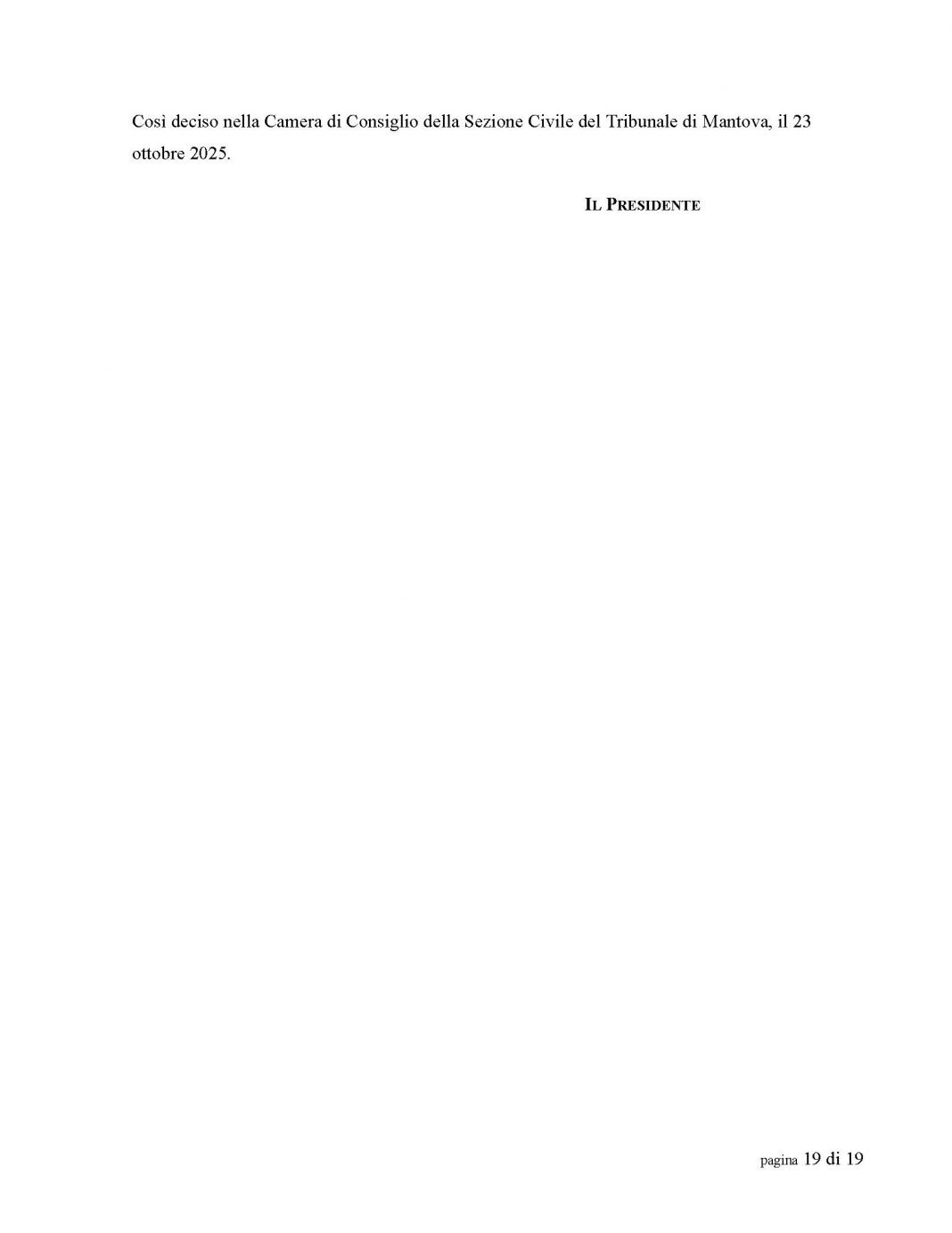 Assim decidido na Câmara de Conselho da Seção Cível do Tribunal de Mântua, em 23 de outubro de 2025.